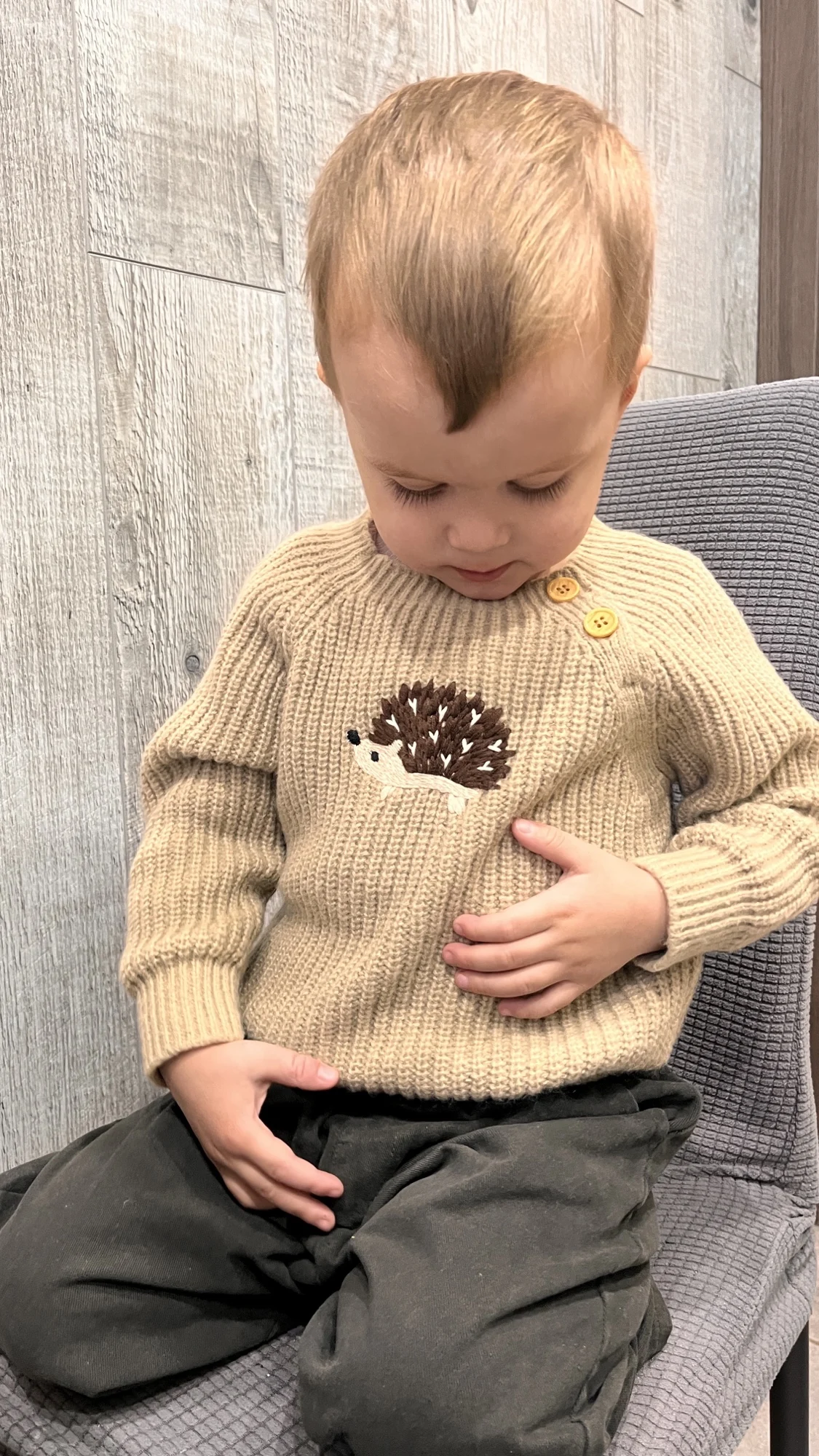 Niedlicher Strickpullover mit liebevollem Igel-Design. Perfekt für Jungen und Mädchen an kühleren Herbsttagen.